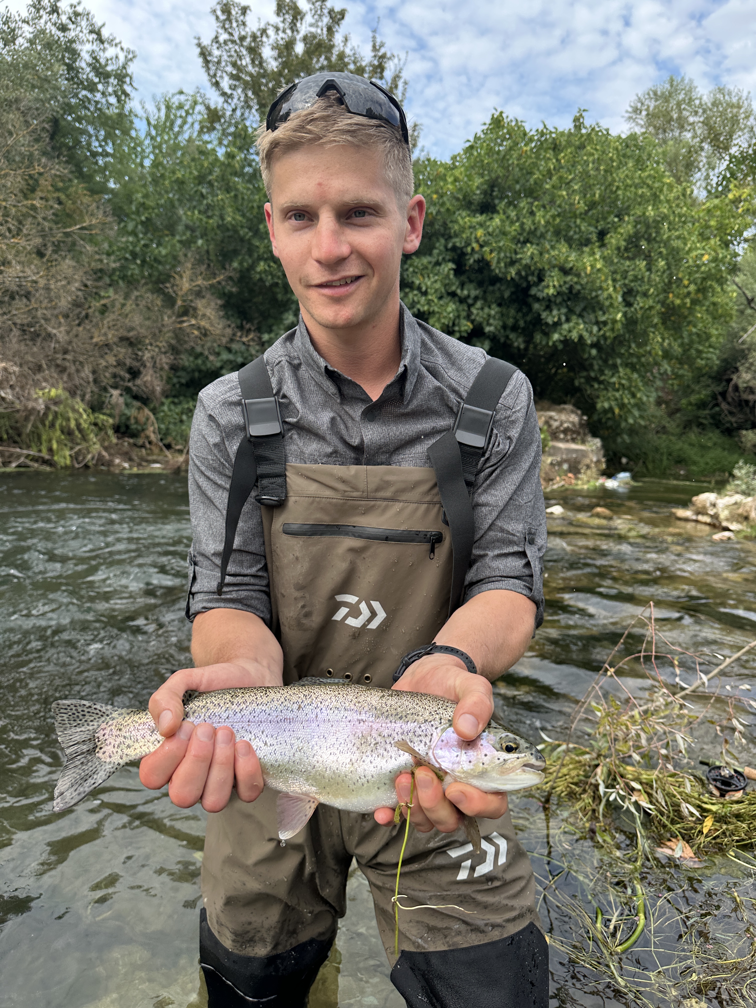 Rainbow trout are freshwater fish characterized by their distinctive pink stripe along the lateral line, which gives them their name. They have a silvery body with scattered black spots and a prominent dorsal fin. Rainbow trout prefer cold, clear streams and lakes, where they feed on insects, small fish, and crustaceans. They are highly sought after by anglers for their fighting spirit and delicious taste, making them a popular choice for recreational fishing. In Bosnia rainbow trout are very often breed in many fisheries around Bosnia and in a lot cases they escape fisheries and settle in rivers and lakes altough in some places they are released into rivers. During our trips you will be able to catch rainbow trouts in Neretva and Buna river.