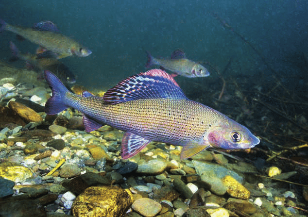 Grayling are freshwater fish recognized by their slender body and distinctive dorsal fin, which is large and deeply forked, resembling a sail. They typically have a silvery hue with shades of blue and purple, and their scales often display a shimmering iridescence. Grayling prefer cold, clear rivers and streams with gravel bottoms, where they feed on insects and small crustaceans. They are prized by anglers for their beauty, acrobatic leaps, and challenging fight when hooked. In Bosnia grayling can often be found in many rivers after they were introduced for the first time. In our trips you will be able to catch them in Neretva and Sturba river.